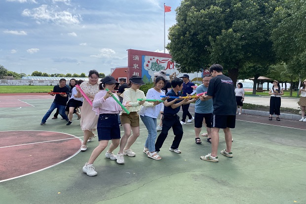 活动中,老师们在各自组长的带领下不分年龄、不分性别,遵守纪律、服从指挥,合力完成了“珠行万里”、“同心击鼓”等系列充满挑战性、协作性和趣味性的活动项目,尽情感受着活动的无穷乐趣与魅力,共同体会着信任、协作、责任、鼓励等要素对团队成功的重要性,充分展现了老师们拼搏进取、团结协作的良好精神风貌。